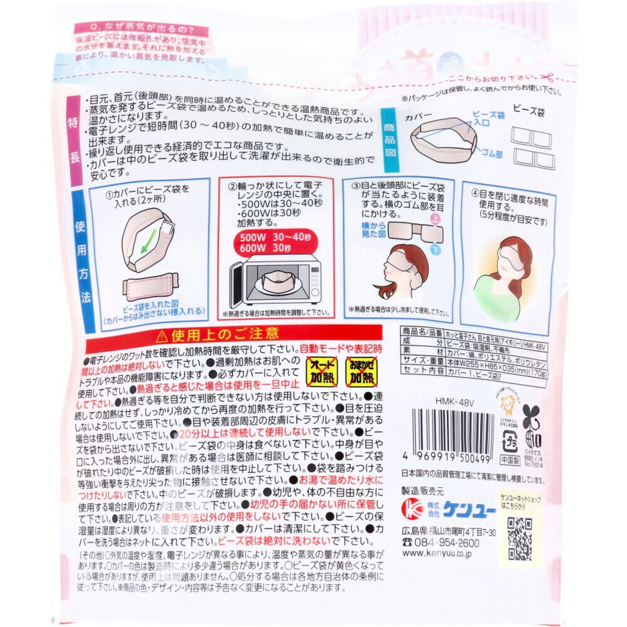 ●蒸気を発するビーズ袋で温めるため、しっとりとした気持ちのよい温かさになります。